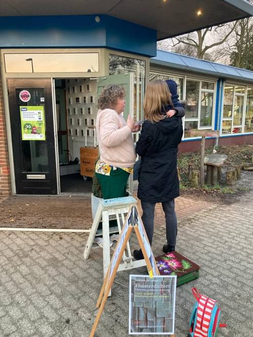 Het werkte als een tierelier. Met mijn keukentrap en zachte stem stond ik op veel verschillende culturele festivals, managementconferenties, bibliotheken, voorprogramma’s dichters. In de loop van de tijd zijn de teksten gegroeid, sta ik ook met voorstellingen en vertellingen op padia, weet ik beter wat bij optreden werkt en wat niet, komt bij Fluisterdichter accent op geheel. Spelen met intimiteit tussen vreemden door verbinding met dialoog en gedicht. Poëzie van de ontmoeting.’