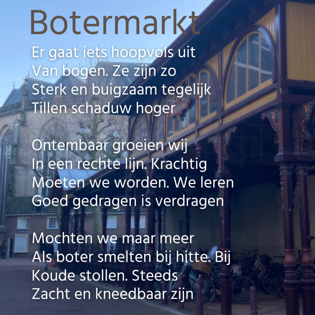 Vandaag de opening van mijmerroute in de schouwburg. De mijmmerroute is een stadswandeling #indeventer langs 14 mooie locaties met gedichten door Deventer dichters – ik mocht voor de Botermarkt, gelegen achter de Lebuineskerk schrijven